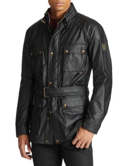 Trialmaster Belted Waxed Cotton Jacket In Black
