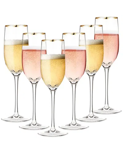 Set Of 2 Luxe Crystal Champagne Flutes With Rim In Transparent