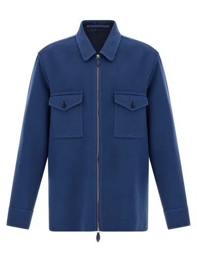Men Double Cloth Overshirt In Blue