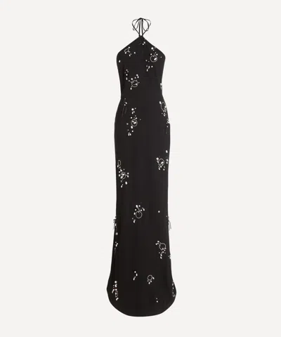 Jolene Embellished Stretch-crepe Halterneck Gown In Black