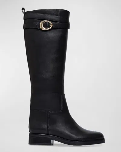 Tanner Leather Buckle Riding Boots In Black