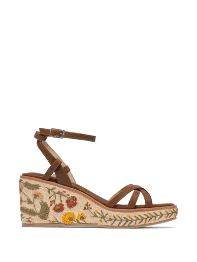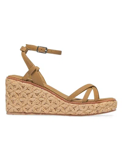 95mm Cairo Leather And Raffia Wedge Sandals In Brown