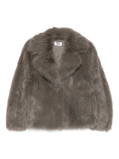 Mid-length Plush Beige Coat In Brown