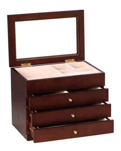 Walnut Lacquered Wood 3 Level Jewelry Box