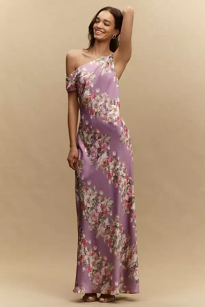 Sienna Off-the-shoulder High-shine Satin Maxi Dress In Purple