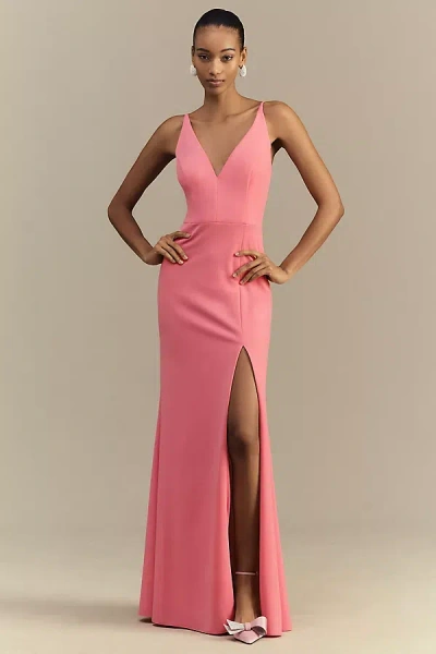 Stella Sleeveless V-neck Stretch Crepe Maxi Dress In Pink