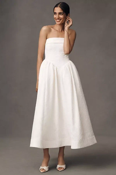 Strapless Drop-waist Fit & Flare Jacquard Maxi Dress In White