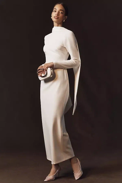 Long-sleeve Scarf Knit Maxi Dress In White