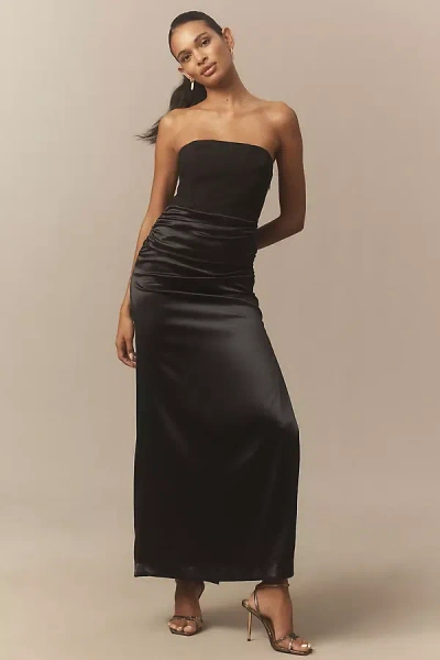 Anastasia Strapless Satin Crepe Combo Maxi Dress In Black