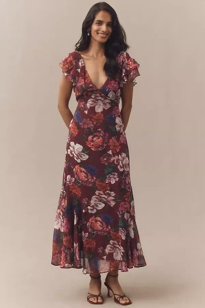 Flutter-sleeve Plunging Maxi Dress In Multi