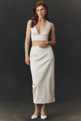 Taffeta Halter Skirt Set In White