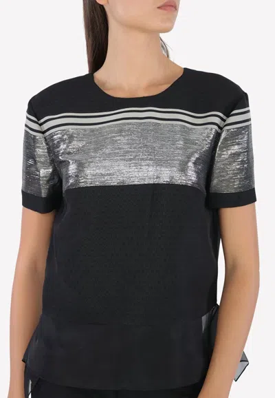 Sequined Silk Gown With Asymmetrical Neckline In Blue
