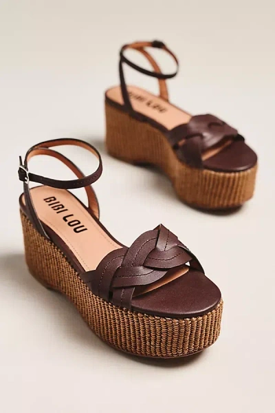 Raffia Platform Heel Sandals In Burgundy