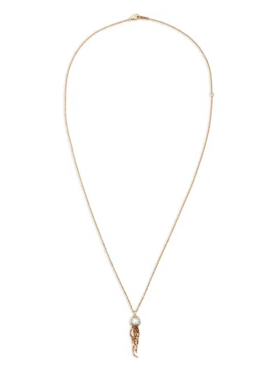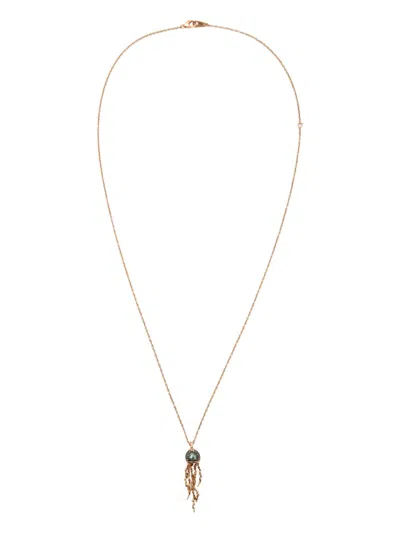 18k Rose Gold Jellyfish Diamonds And Pearl Necklace In Pink