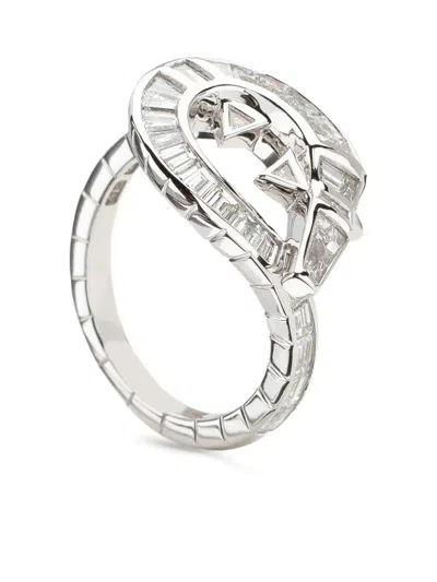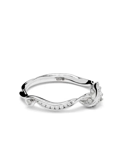 18k White Gold Alligator Twist Diamond Ring In Metallic