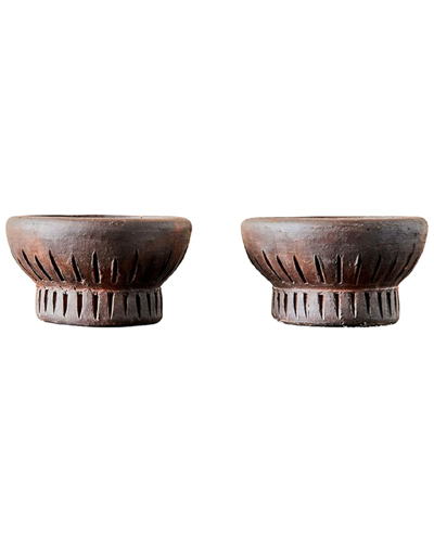Round Trio Low Neck Mouthblown Recycled Glass Vase In Brown