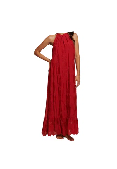 Women's Long Shoe Dress Bikini Mima With Embroidered Fabric In Red