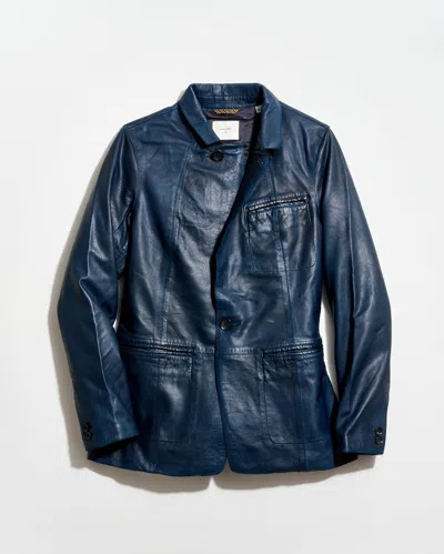 Washed Leather Blazer In Blue