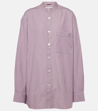 X Tekla Striped Cotton Pajama Shirt In Purple