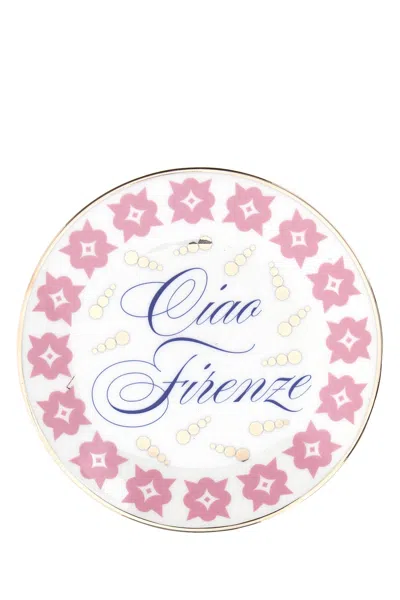 Embellished Porcelain Ciao Firenze Plate In Multi