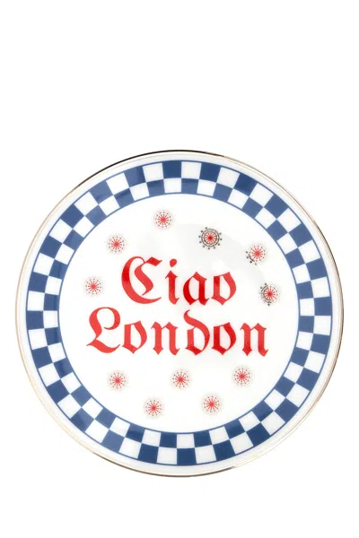 Embellished Porcelain Ciao London Plate In Multi