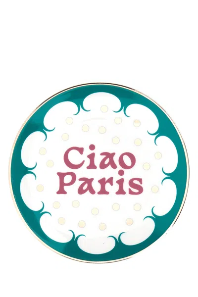 Embellished Porcelain Ciao Paris Plate In Multi