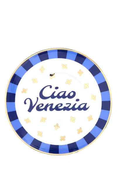 Embellished Porcelain Ciao Venezia Plate In Multi