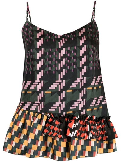 几何图案不对称下摆细肩带背心