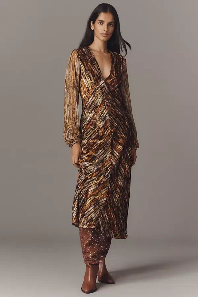 Rikke Long-sleeve Button-front Midi Dress In Brown