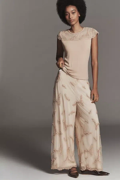 Ribbed Mesh Short-sleeve Top In Brown
