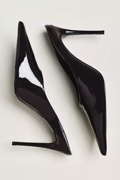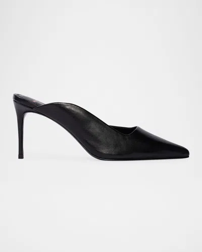 Asymmetrical Leather Stiletto Mule Pumps In Black Leather