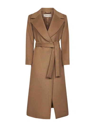 Camel Wool Blend Calistea Wrap Coat In Brown