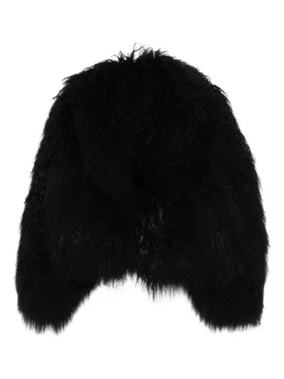 Shearling Reversible Coat Waist Collar Neck In Blue