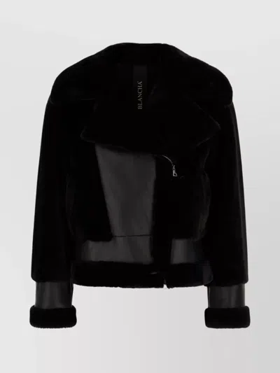 Color-block Shearling Jacket With Long Sleeves In Multi
