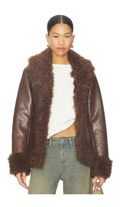 Down To Earth Faux Suede Trench Coat Jacket In Brown