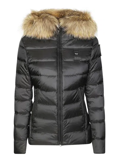 Long Quilted Down Jacket With Removable Raccoon Fur Trim In Black