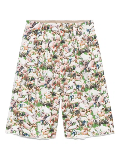 小猪印花褶饰短裤