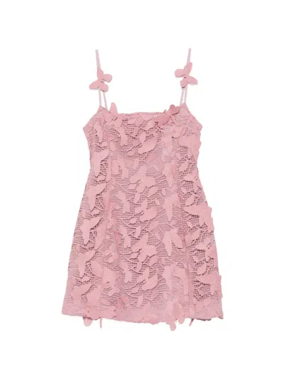Butterfly-lace Appliqué Lace Mini Dress In Pink