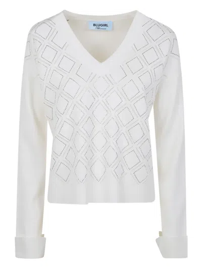 Open-work Long-sleeved Knitted Sweater In White
