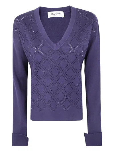 V-neck Sweater With Rhombus Pattern And Embellished Detailing In Purple