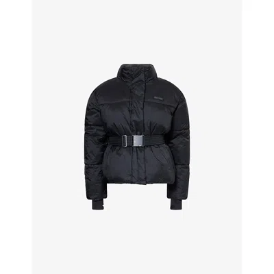 Womens Black Hooded Fitted Waterproof-shell Ski Suit