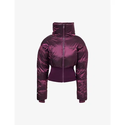 Womens Burgundy Layered-collar Padded Ski Jacket In Purple