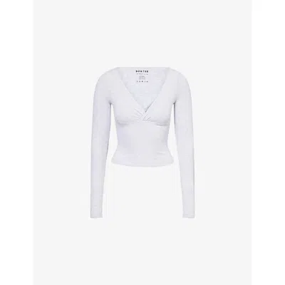 Womens Grey Marl Ribbed V-neck Stretch-woven Top In Gray