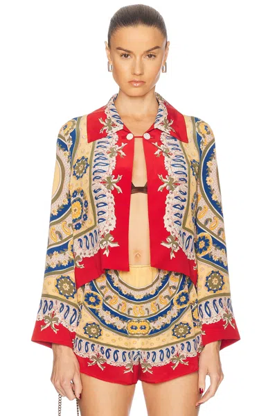 Bricolage Printed Silk Crepe De Chine Jacket In Red