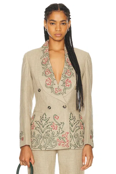 Embroidered Trumpet Flower Suit Jacket In Tan
