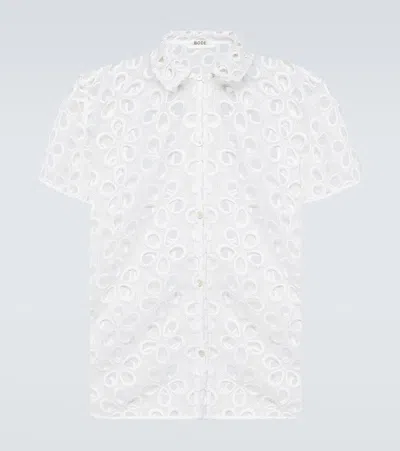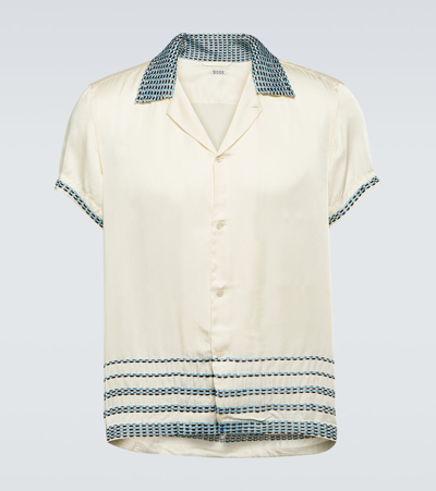 Embroidered Silk Satin Bowling Shirt In White