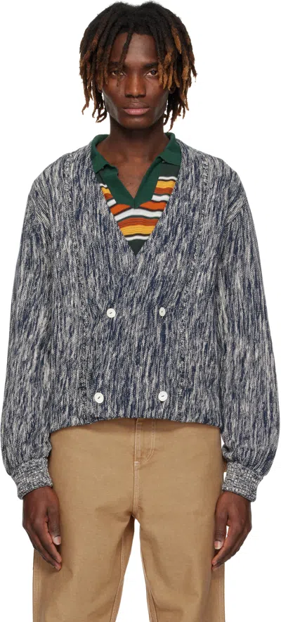 Navy Double-breasted Cardigan In Marled Blue