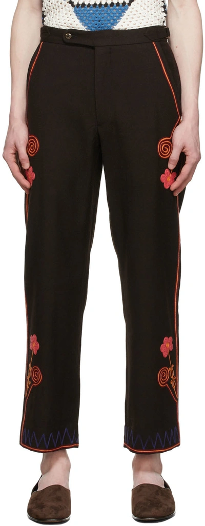 Astor Trillium Camp-collar Embroidered Wool Shirt In Black