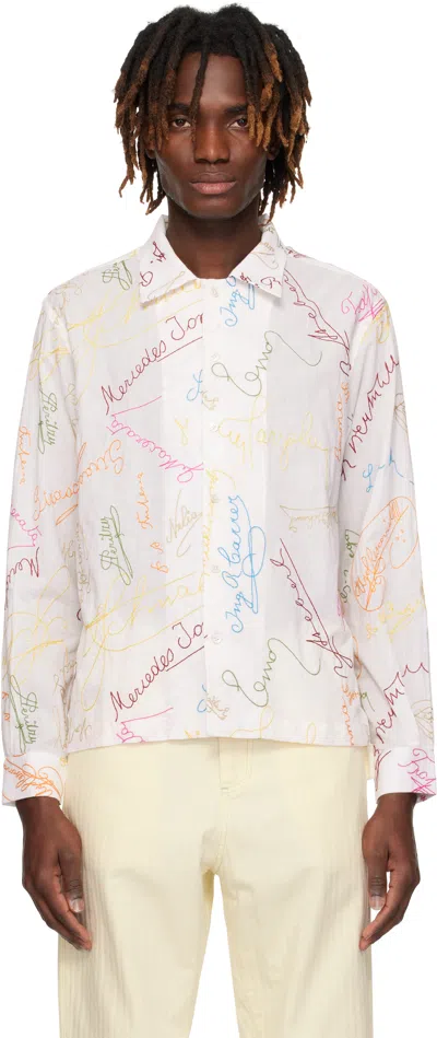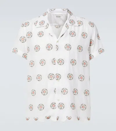 Camp-collar Embroidered Two-tone Cotton Shirt In Multi