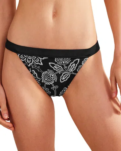 Tanga Bikini Bottomsblack, White Floral Women In Black, White Floral
